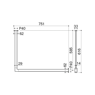 Hanger Bar AC-902 H600 W751 (Wall + Ceiling Mount)
