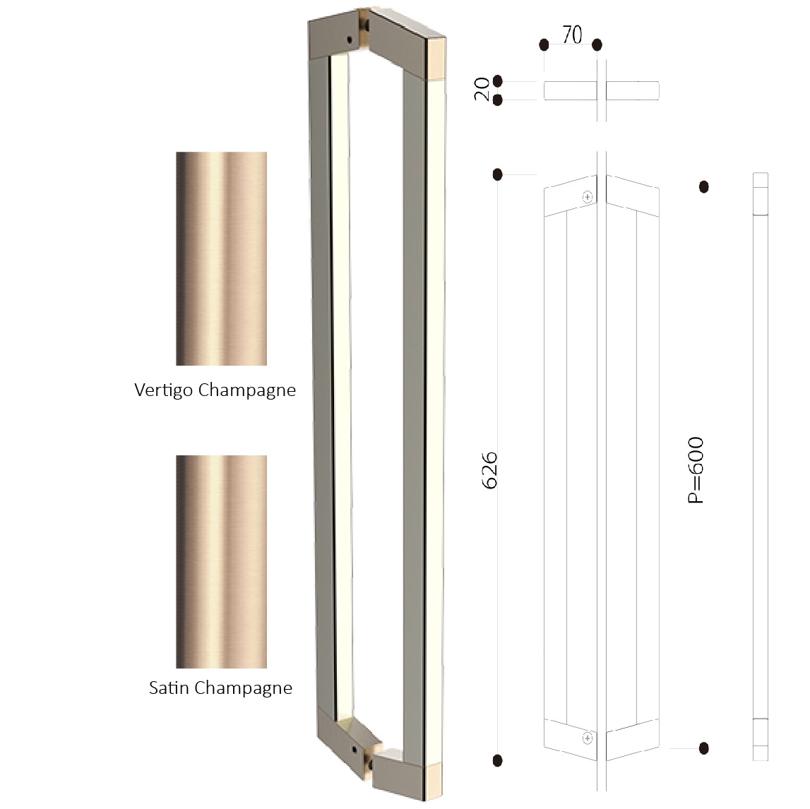 Available Finishes: Satin Champagne Gold & Vertigo Champagne