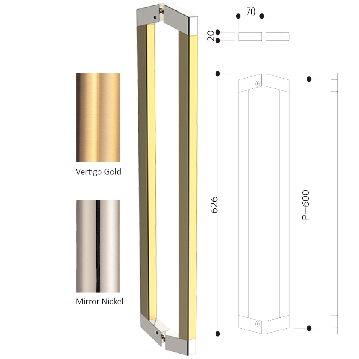 Available Finishes: Mirror Nickel & Vertigo Gold