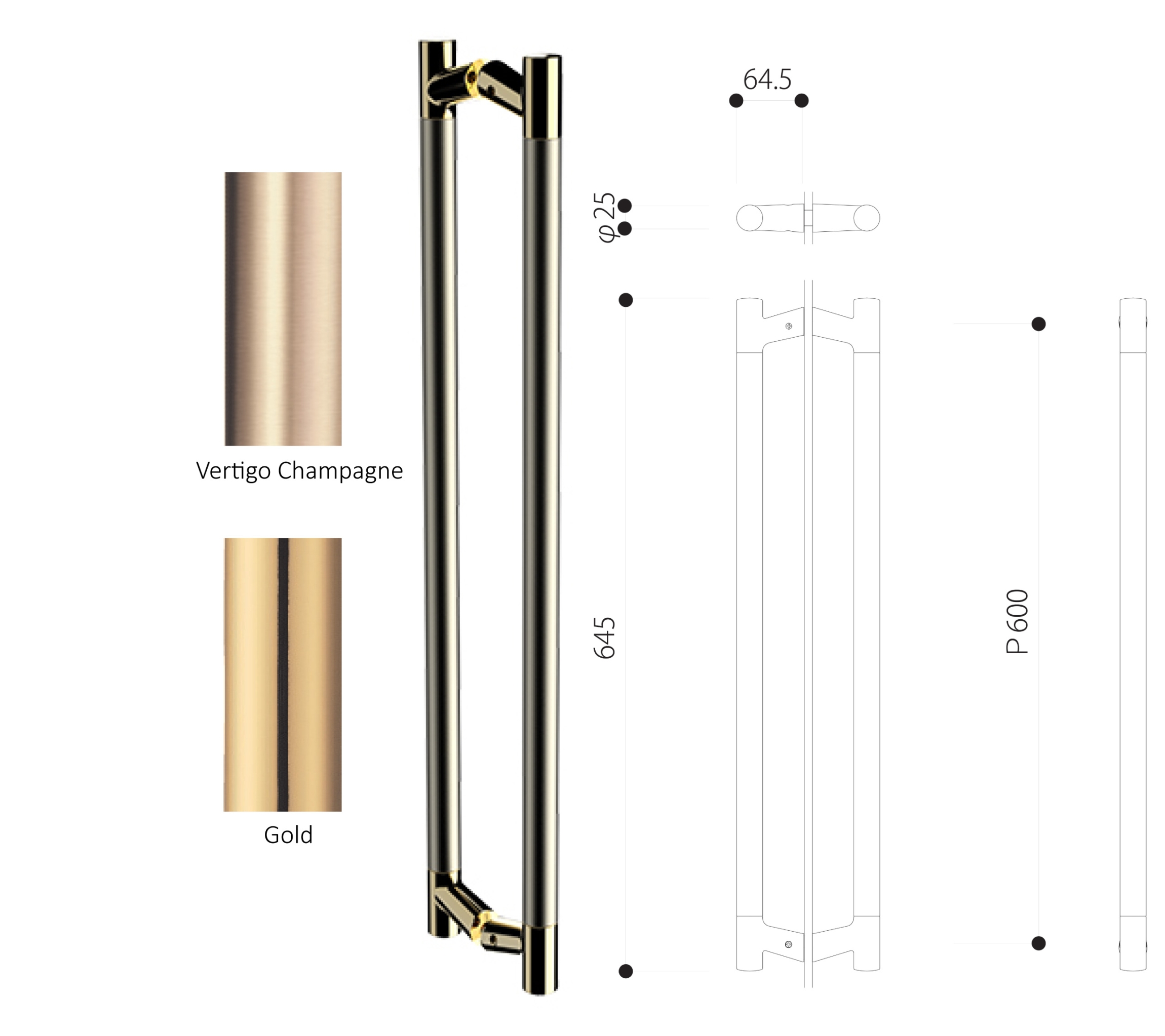 Available Finishes: Gold & Vertigo Champagne