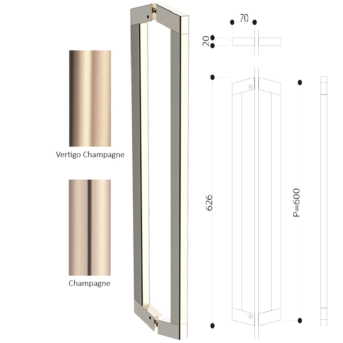 Available Finishes: Champagne Gold & Vertigo Champagne