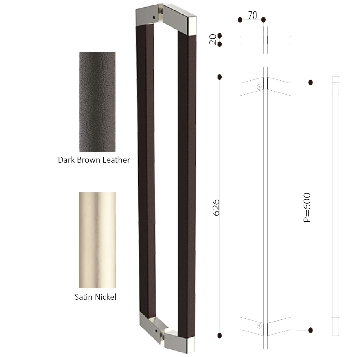 Available Finishes: Satin Nickel & Dark Brown Leather