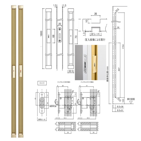 1800mm 嵌入式趟門拉手連 衛浴鎖