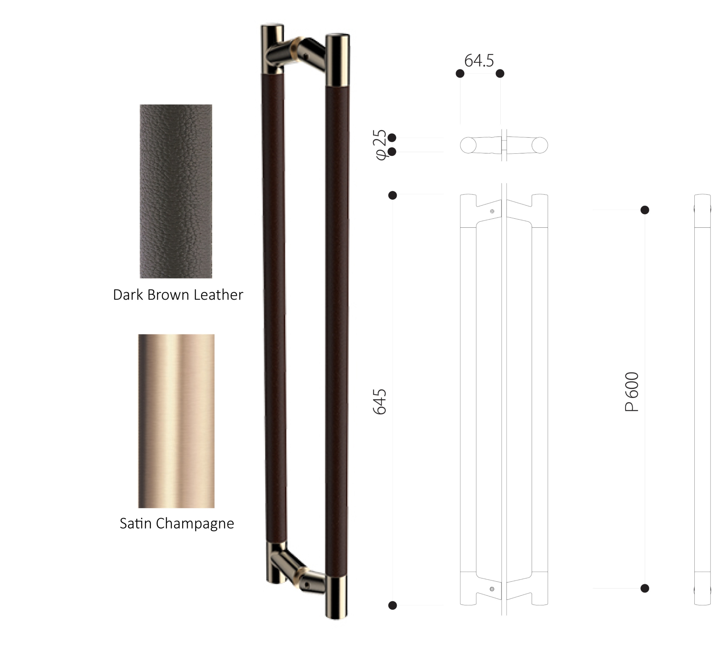 可用飾面:Satin Champagne Gold & Dark Brown Leather
